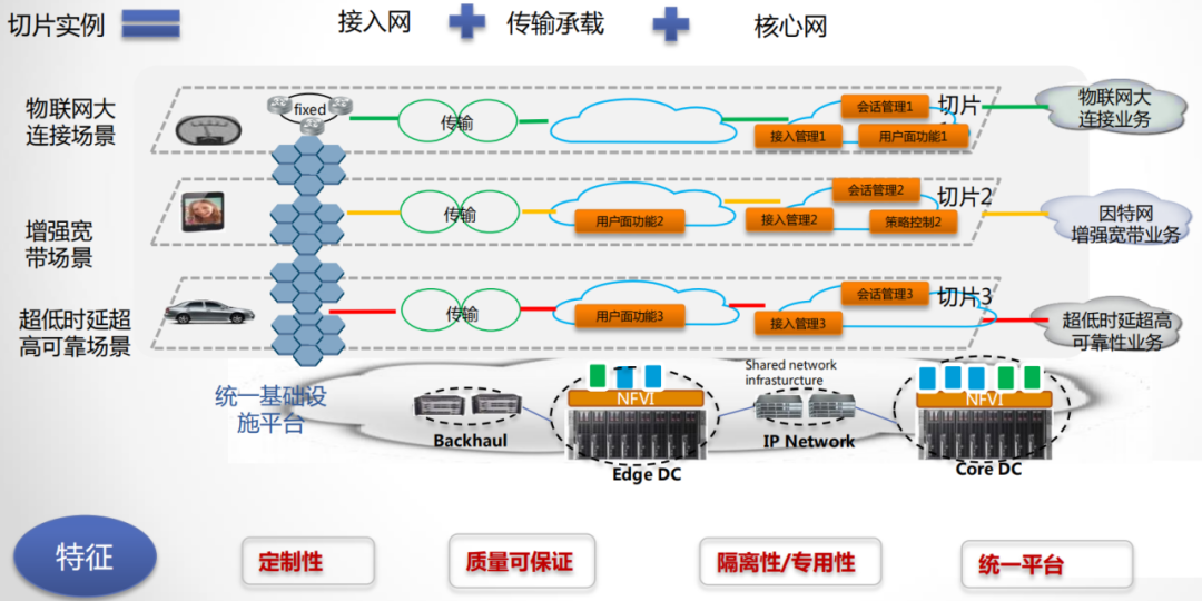 通过网络切片,运营商能够在一个通用的物理网络之上构建多个专用的、虚拟化的、互相隔离的逻辑网络,来满足不同客户对网络能力的差异化要求。