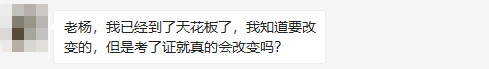 我的一个粉丝小友Ready667就是这样,两年前问了我要不要考证,直到今年都还在纠结中,时不时过来和我探讨一下人生。