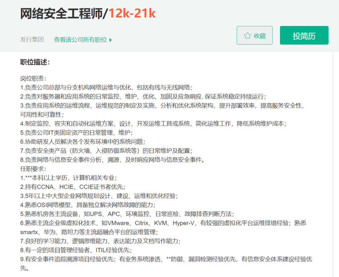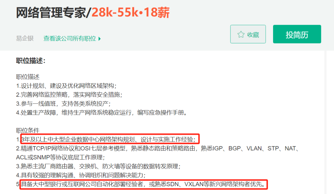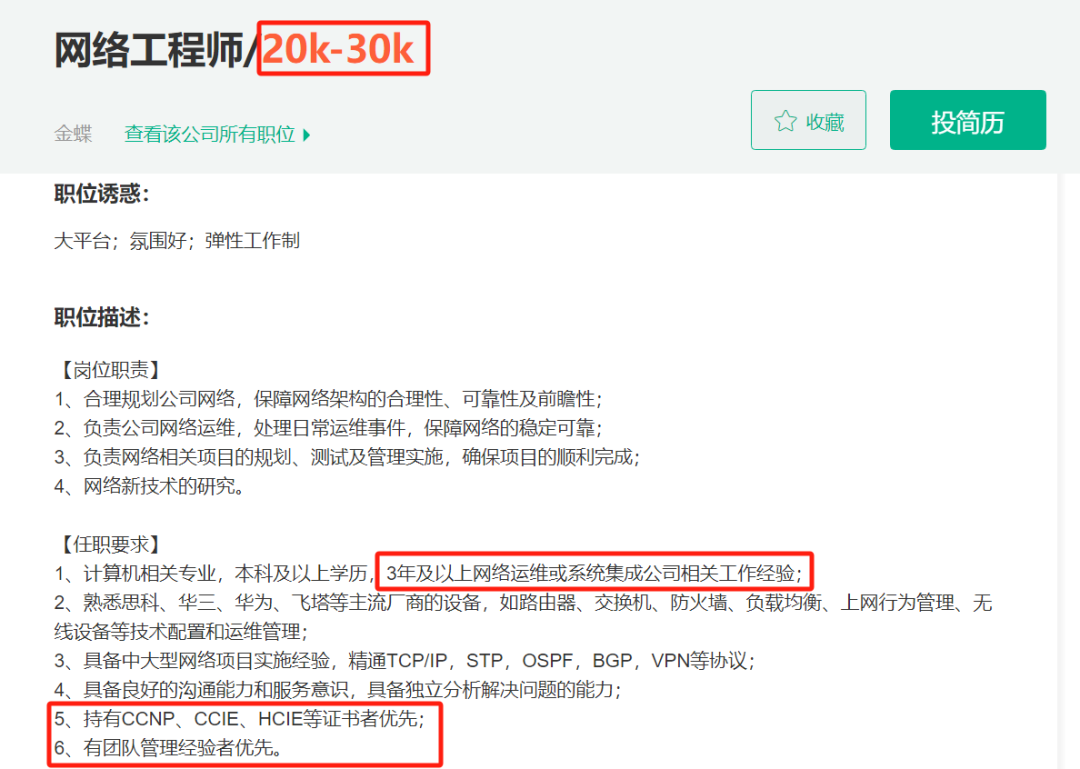 这是我随手在招聘网站截图的5年网工要求: