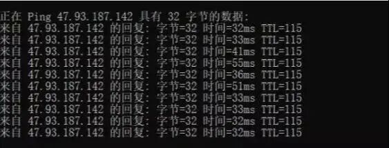 从以上我就可以知道在给47.93.187.142发送10个数据包的过程当中,返回了10个,没有丢失,这10个数据包当中返回速度最快为32ms,最慢为55ms,平均速度为37ms。说明我的网络良好。