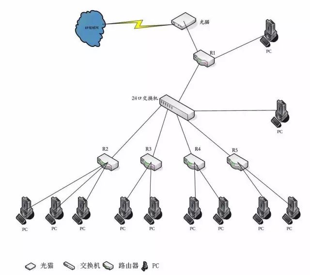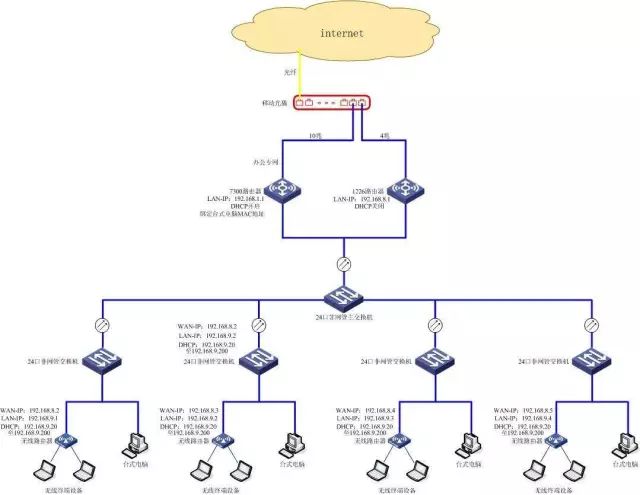 目前采用三层交换机进行网络设计,既可以进行任意虚拟子网划分,又可以通过交换机三层路由功能完成子网间通信,为此节省了价格昂贵的路由器。