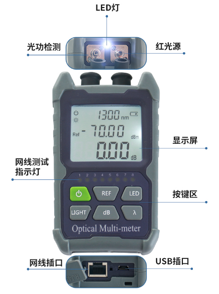 所以,需要一个检查光纤发光是否正常的的仪表,这个就不得不说下光纤故障排查神器,光功率计和红光笔,光功率计用来测试光纤传输损耗的,也非常好用、简单,容易上手,是排查光纤故障的不二之选。