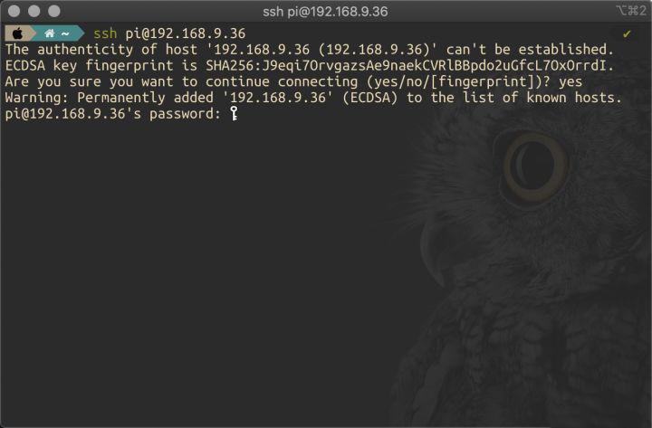 输入密码(默认为‘raspberry’),现在,输入密码并按回车键。