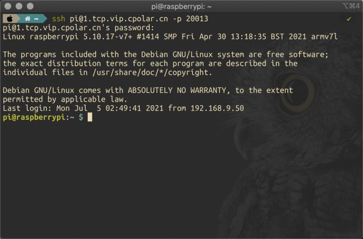 登录成功了!现在,你可以在家里,或者学校,或者办公室,手机4G终端网络任意地方访问你的树莓派!