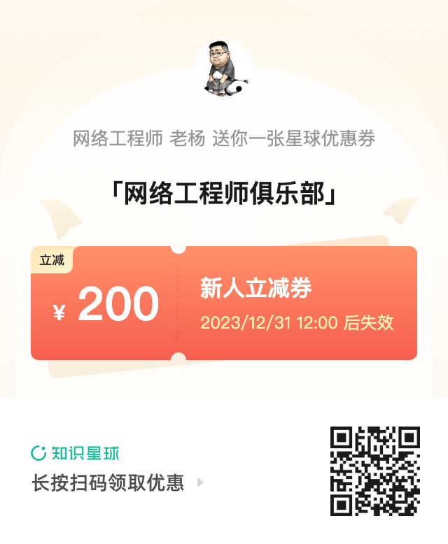 但是,为了筛选出一批真正想跟老杨学习网络的粉丝小友,给你提供一个干净高效的网络圈子,真正回归技术交流;由资深网工老杨带头发起网工圈子[网络工程师俱乐部]知识星球,面向ICT行业技术从业者们。