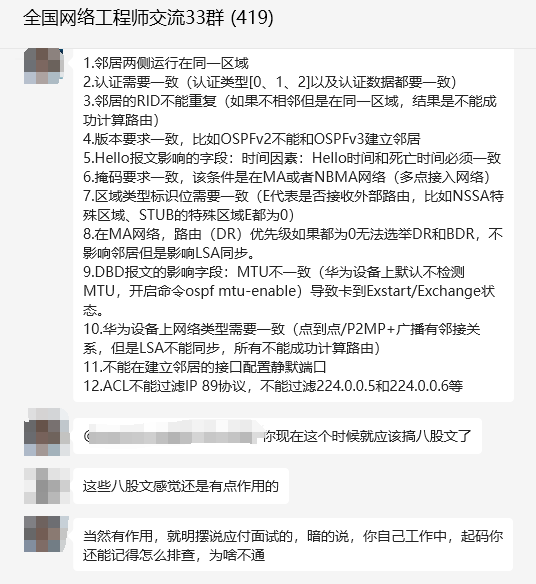 前几天,俱乐部的网工群里有不少人都在面试,大家也在各抒己见,大佬们都冒出来分享经验了。