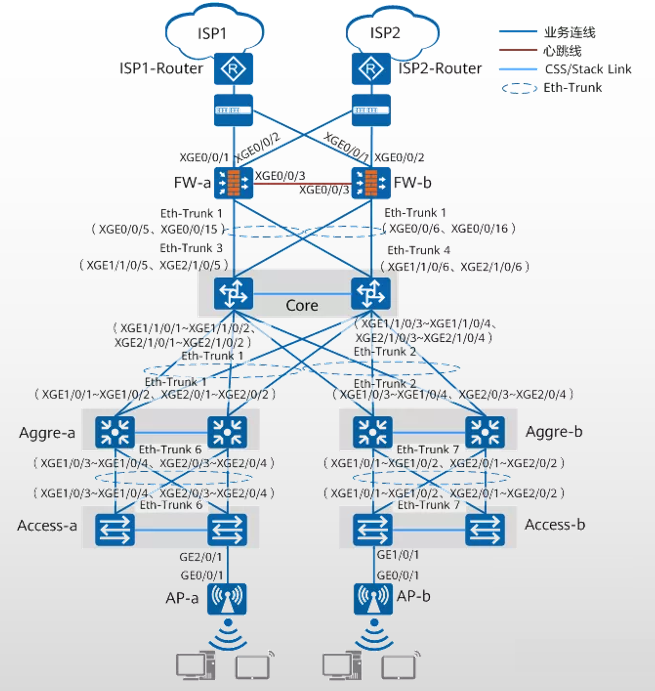 为了保证链路级可靠性,链路间采用Eth-Trunk组网。