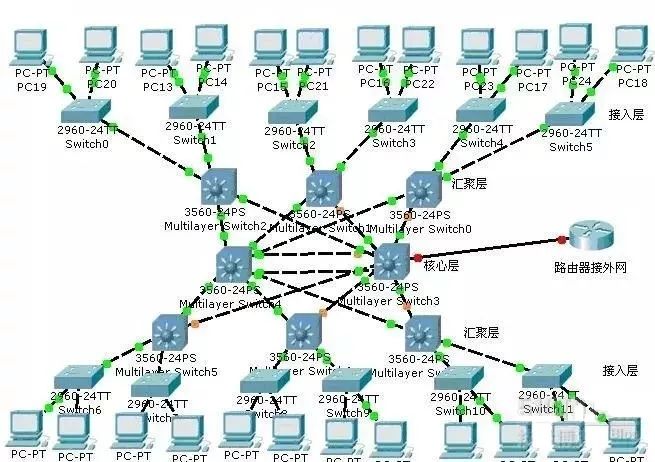 (1)如果在网络环境中有服务器的话,服务器要和汇聚层交换机相连,有的时候也可以服务器与核心层交换机相连。