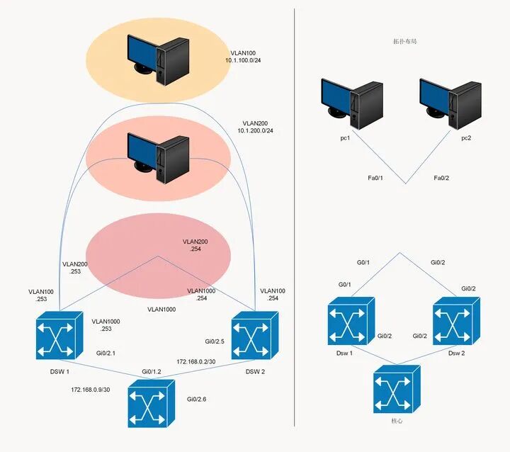 因为核心交换机成本比较高,2台核心交换机的投资和维护成本也很高,所以一般只有电信,金融等企业采用这种双核心的拓扑设计结构。