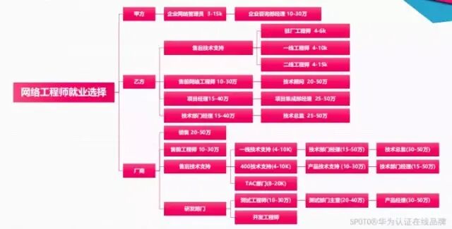 上图是老杨整理出来的网络工程师几个常见的岗位发展及对应薪资。