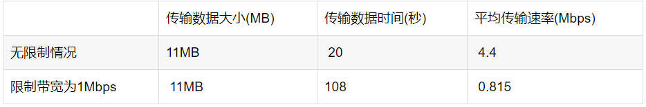 u 当配置限速lMbps时,实际速度为0.815Mbps,限速效果很明显。