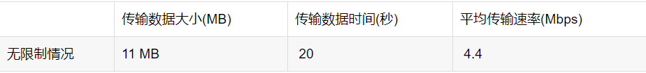 在配置了带宽限制策略的情况下,从PCI向PC2传一个较大的文件(比如60.5MB),计算传输时间和平均传输速率。将上述结果与没有配置带宽限制策略的计算结果进行比较。