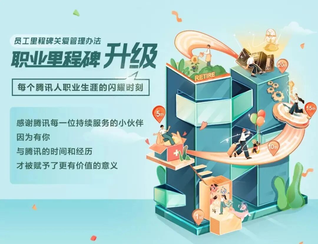 我这还没缓过神,就前两天,鹅厂再次升级福利,发布腾讯员工的“职业里程碑”。
