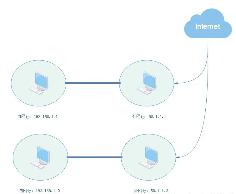 比如:192.168.1.1 -->58.1.1.1:2233 192.168.1.2-->58.1.1.1:2234