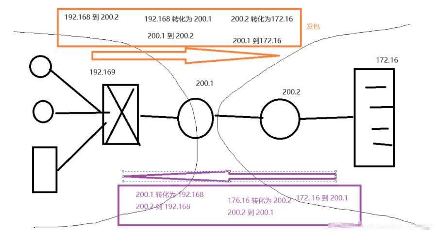 192.168想访问200.2,到路由器后,路由或者三层设备将192.168映射到外网地址,也就是换成外网地址200.1,外网地址(公网地址是需要到运营商购买的,你买的宽带,其实付得是租用公网IP地址的钱)。
