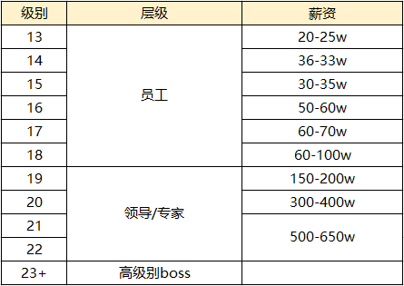 基本工资+年终奖+分红。年终奖会因考评不同而有差别,一般15级以上的员工年终奖是6-12个月。