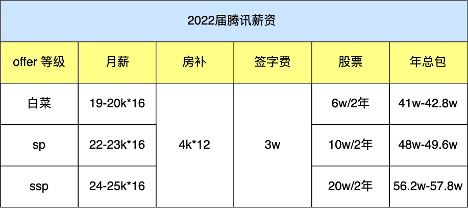 通过对比去年的校招薪资,你会发现,今年腾讯的校招薪资主要是房补更高了,其他没啥。