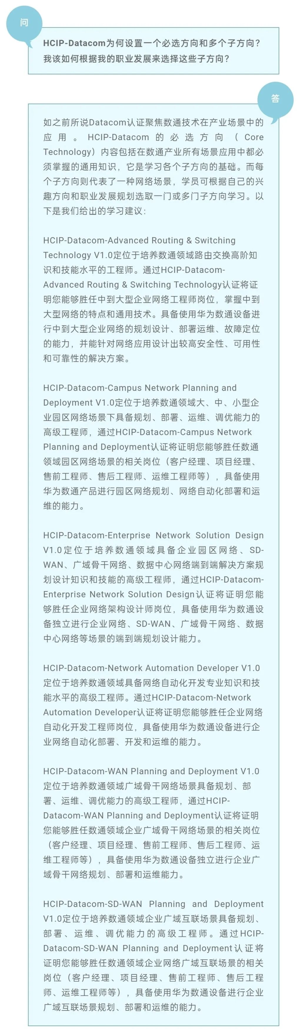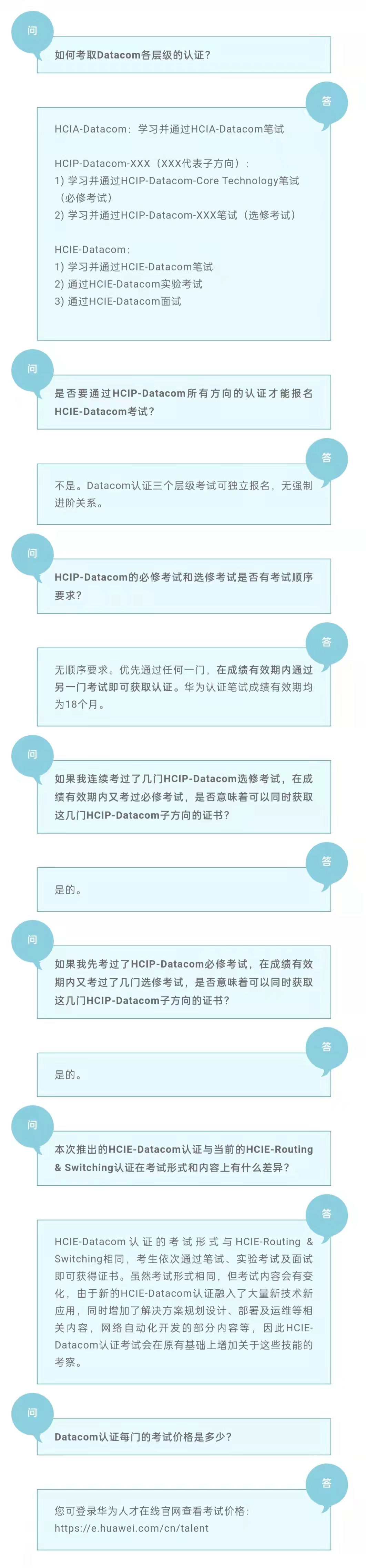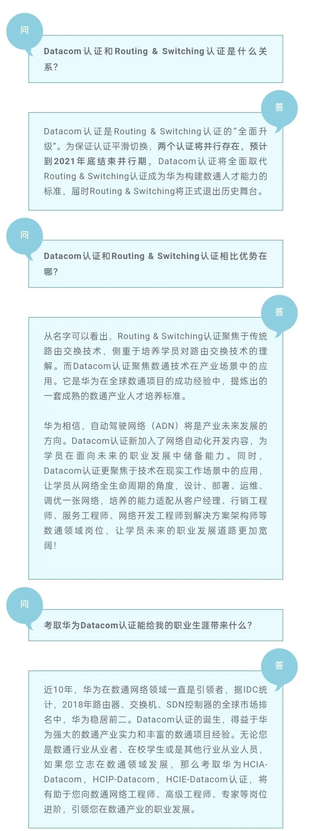 Datacom认证是Routing & Switching认证的“全面升级”。为保证认证平滑切换,两个认证将并行存在一段时间。