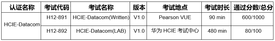HCIE-Datacom V1.0考试覆盖数据通信领域路由交换高阶技术、企业网络架构全景、园区网络典型架构与技术、华为CloudCampus解决方案设计与部署、广域互联网络典型架构与技术、华为SD-WAN解决方案设计与部署、广域承载网络典型架构与技术、华为CloudWAN解决方案设计与部署、网络自动化技术与实践等知识技能。