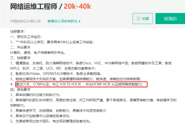 哦,我发现,有证书要求的岗位JD,比我现在的薪资都高,那网工有什么可以考的证书?