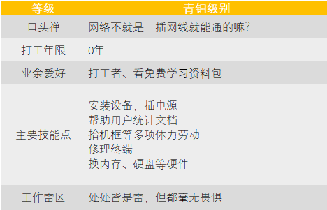 这个等级 ,就可以正式被称呼为“网络工程师”了。但别高兴的太早,也只是刚刚踏入圈子,还没长大的小绿苗。