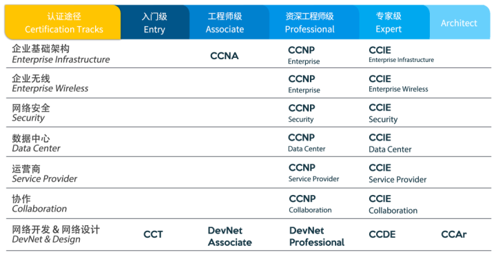 一般来说,厂商认证工程师和软考认证工程师都分初中高级的等级。这里就不多做厂商认证和软考的区别分析,之前的文章均有分析过。