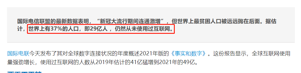 不知道小友们前段时间有没有看到这条消息,是国际电信联盟(ITU)发布的——29亿人处于无法接触到网络的离线状态。