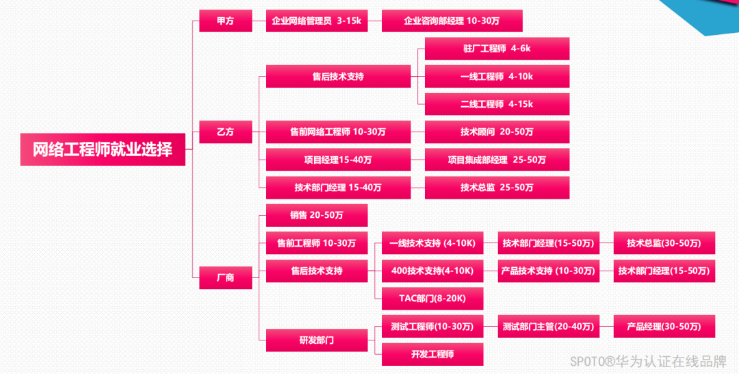 这张图是老杨整理出来,也在公众号发过很多次的一张网络工程师职业发展图。