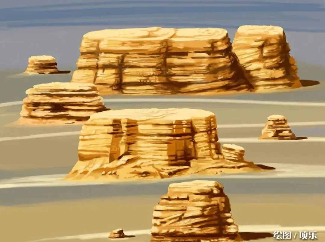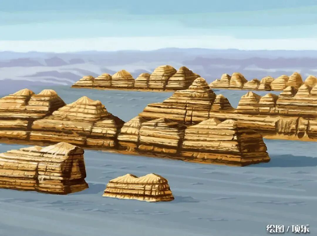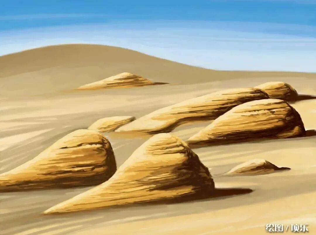如果常年受高速的大风侵蚀,雅丹的迎风坡会越来越陡,形成低矮的鲸背状雅丹。