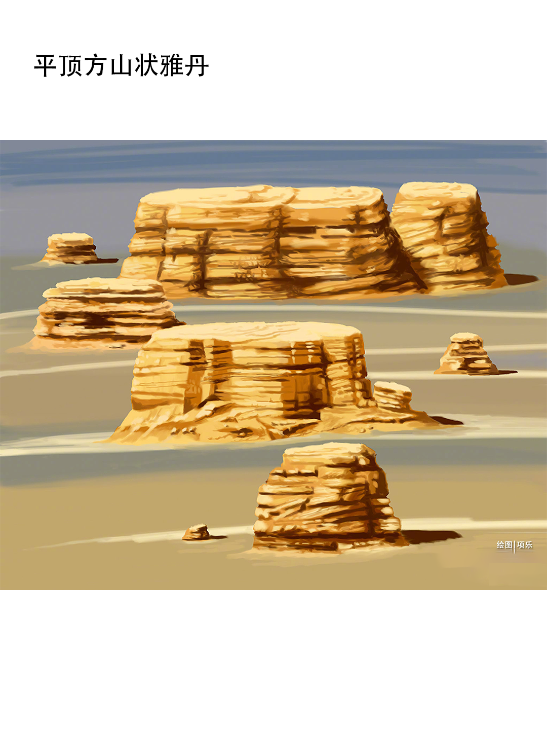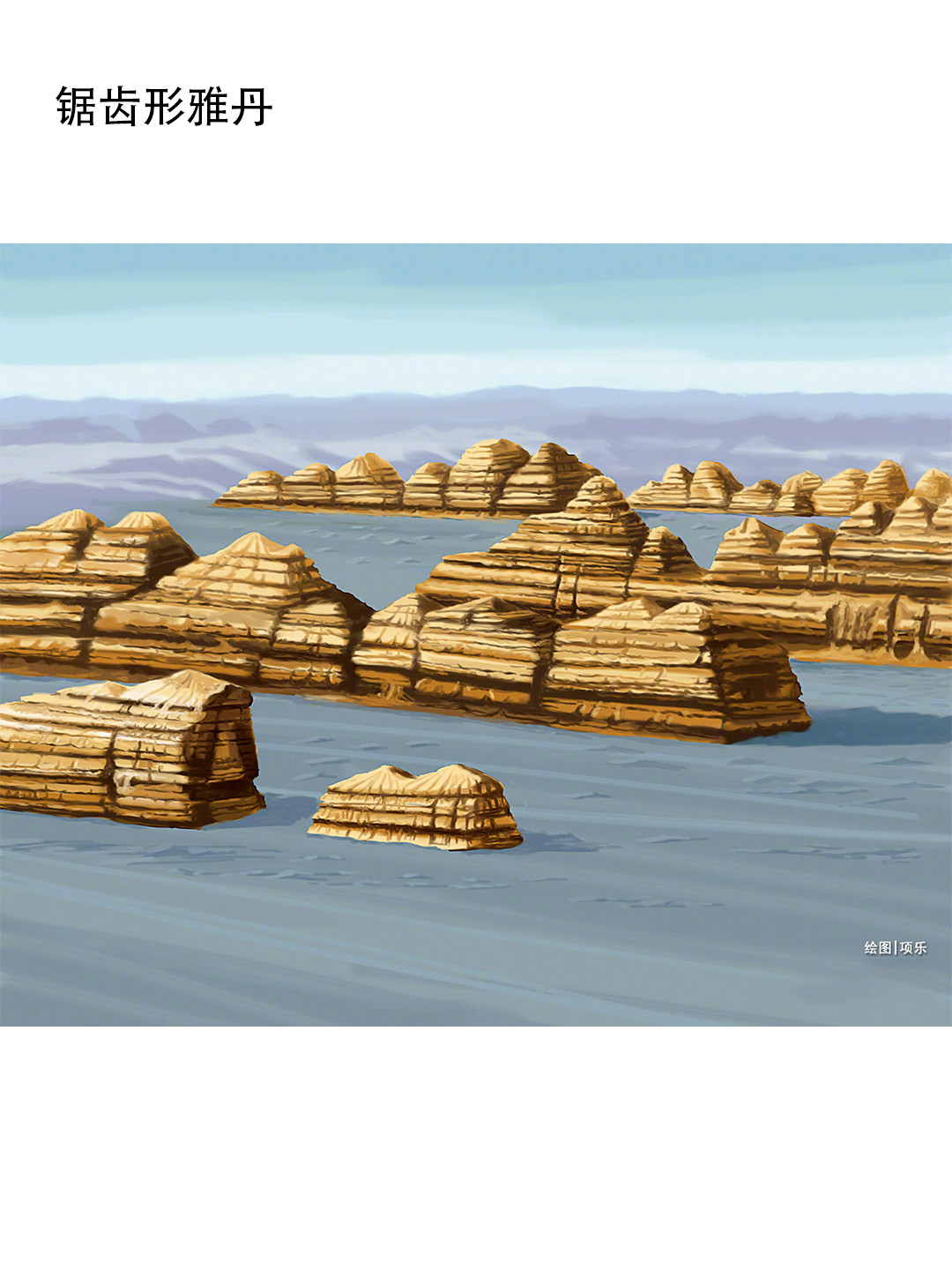 平顶方山状雅丹:经过流水切割的残留平台,在风力作用下形成彼此孤立的平顶方山状雅丹;锯齿形雅丹:若当地风向稳定,能够侵蚀出犬牙状的锯齿形雅丹;