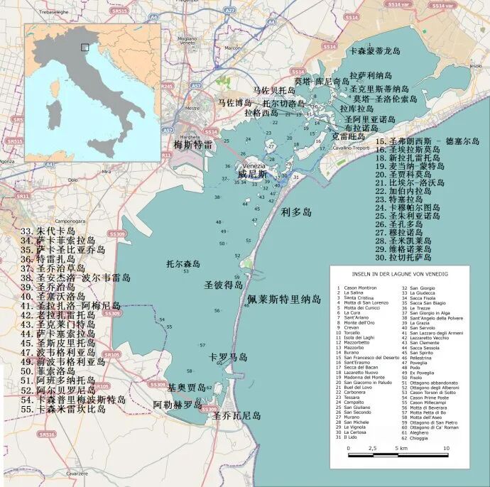 美丽如画的威尼斯城就坐落在潟湖的中心