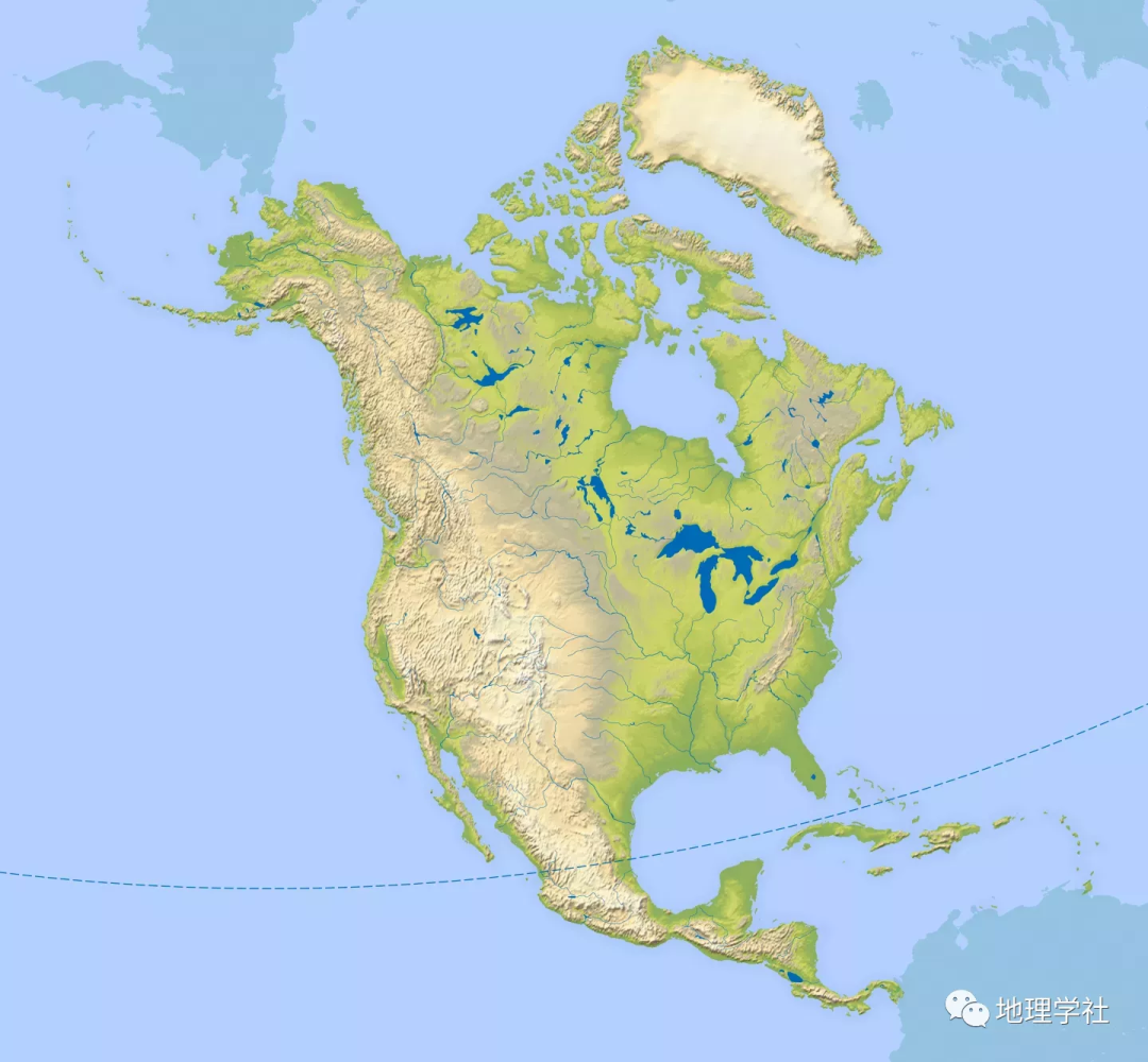 △北美洲地形水系分布图(NET)