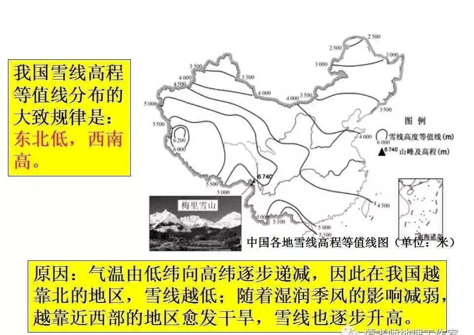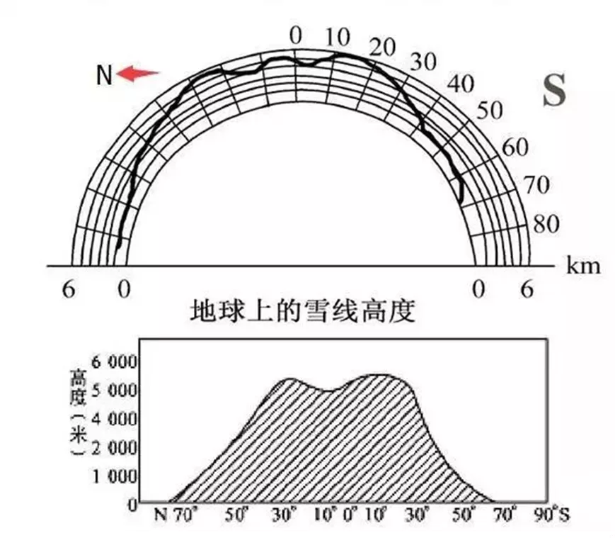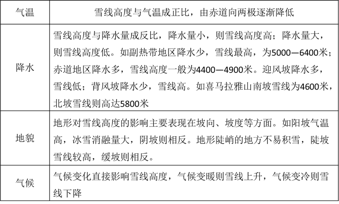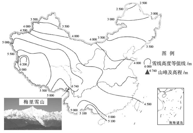 雪线是指在气候变化不大的若干年内,最热月积雪区的下限,