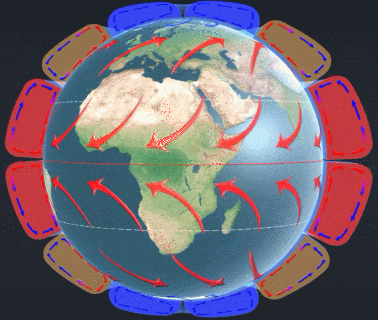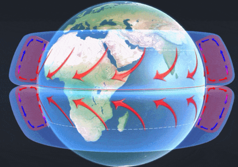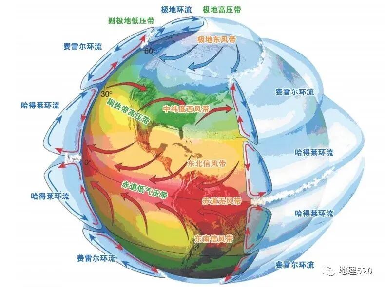 三圈环流,指受太阳辐射对高低纬度的加热不均和自转偏向力影响所形成的环流圈,称为三圈环流,它是大气环流的理想模式。其分第一环流圈,第二环流圈和第三环流圈。第一环流圈为哈德来环流,又称信风环流圈或热带环流圈;第二环流圈为费雷尔环流,又称中纬度环流圈;第三环流圈指极地环流