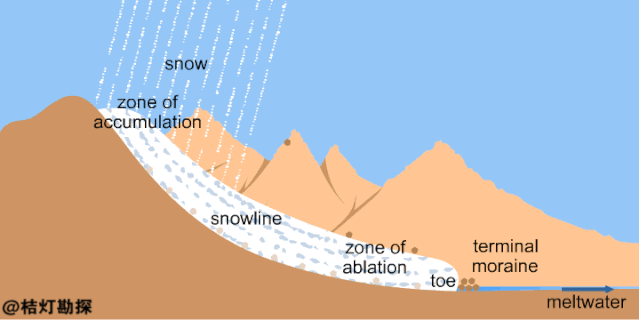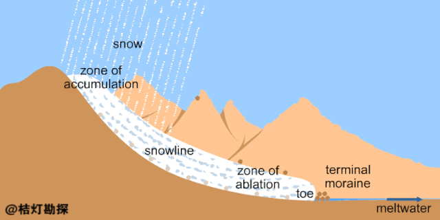 如果冰川消融的速度与积累的速度大致相同那么冰川尖端位置不变将会不断产生冰碛物沉积