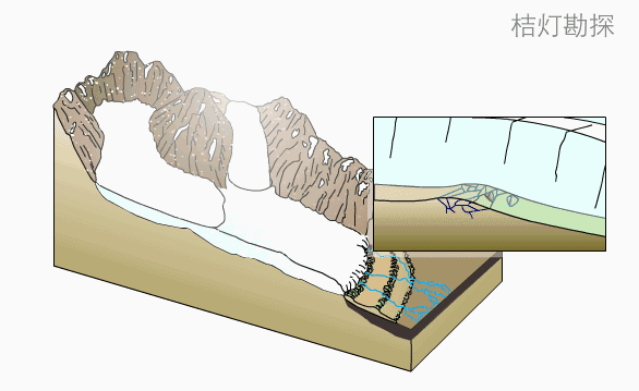 随冰川前进,而在冰川末端围绕的冰碛物,称为终碛,也成尾碛。