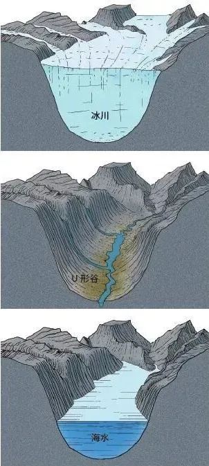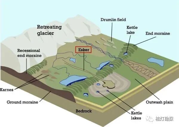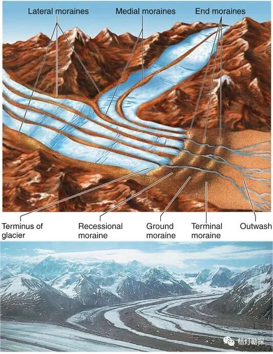 冰碛地貌示意图(侧碛、中碛、终碛)