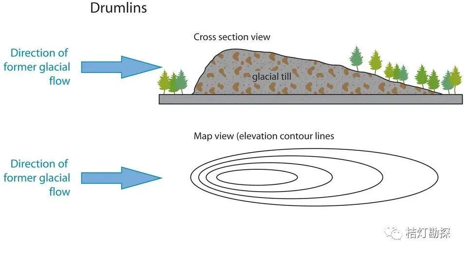 由冰积物所组成的一种丘陵,约成椭圆形,长轴与水流方向一致,迎冰面是陡坡,背冰面是一缓坡,其纵剖面为不对称的上凸形。