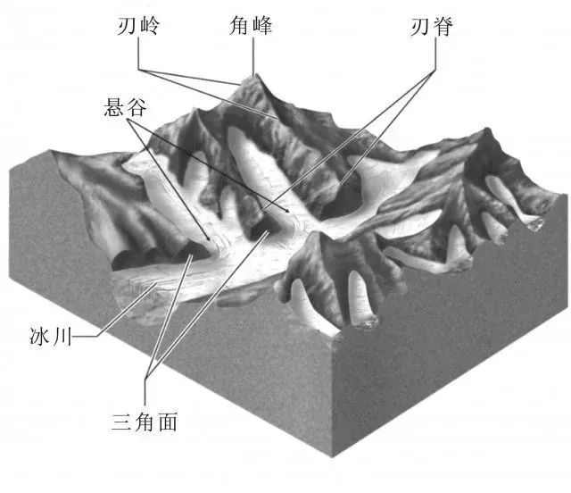 高悬于主冰川谷底之上的支冰川谷。一般是在山谷冰川汇合时,因主冰川侵蚀力强,谷底深,而较小的支冰川的谷底较浅,故常形成悬谷