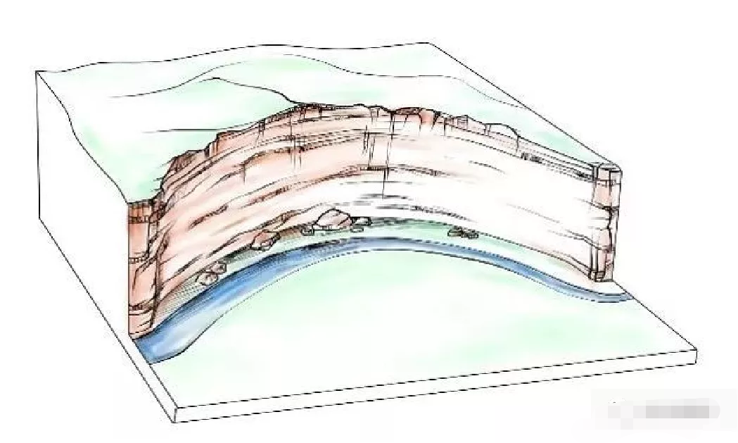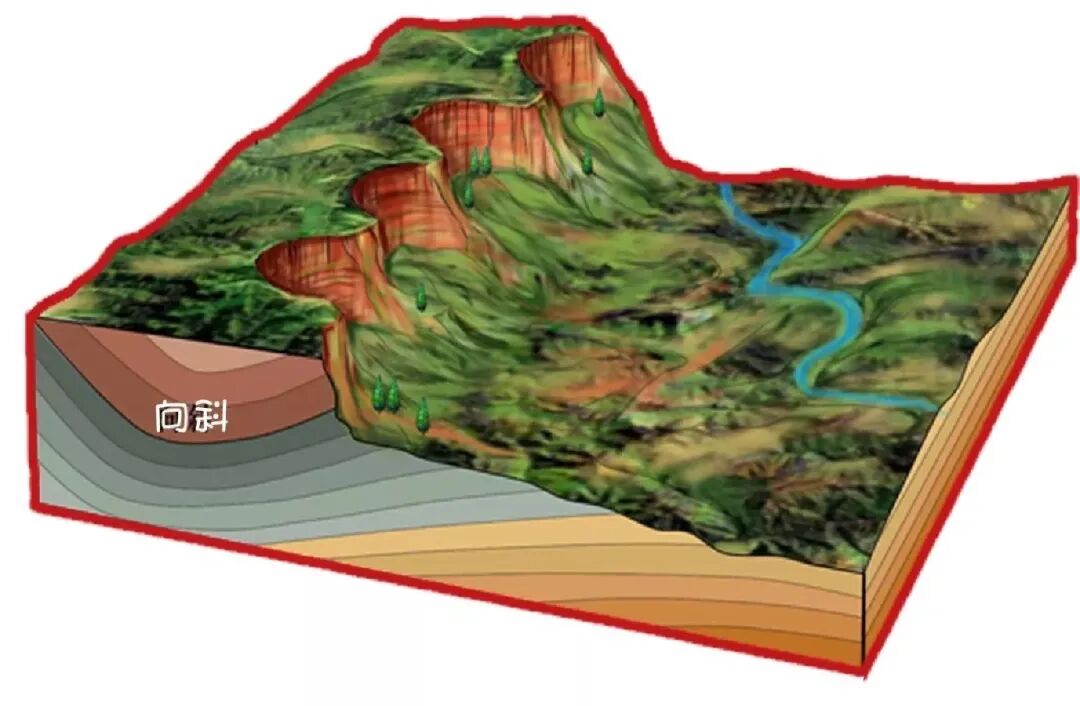 形成丹霞地貌的外力作用:不仅仅有风化作用,还包括流水作用(侵蚀、溶蚀),谷地两侧的红层基部常因差异侵蚀或风化凹进使上部岩层失稳沿节理发生重力崩塌,形成丹霞地貌为经典的丹崖赤壁。
