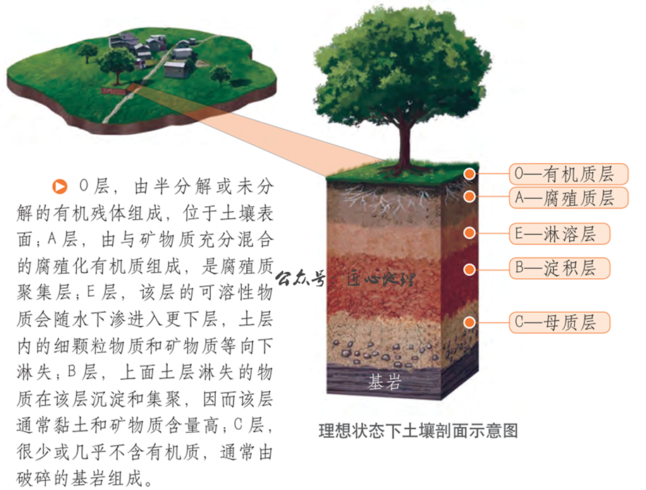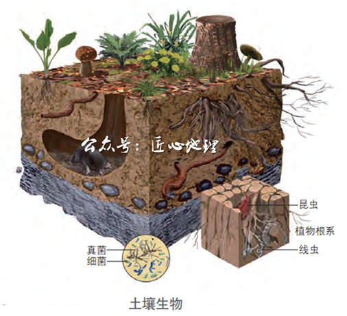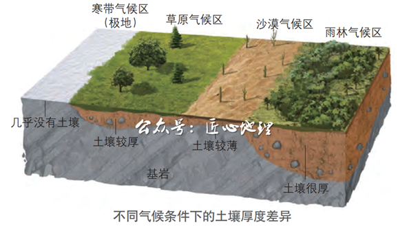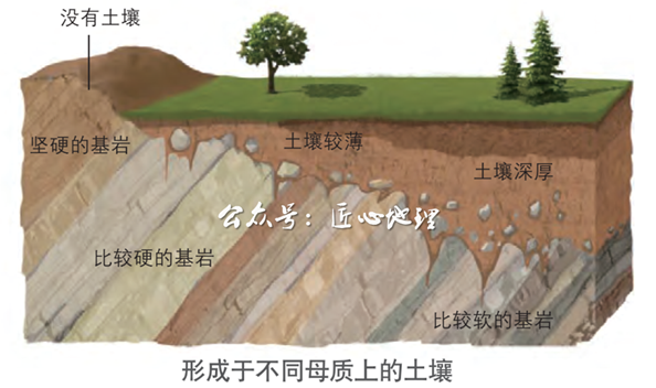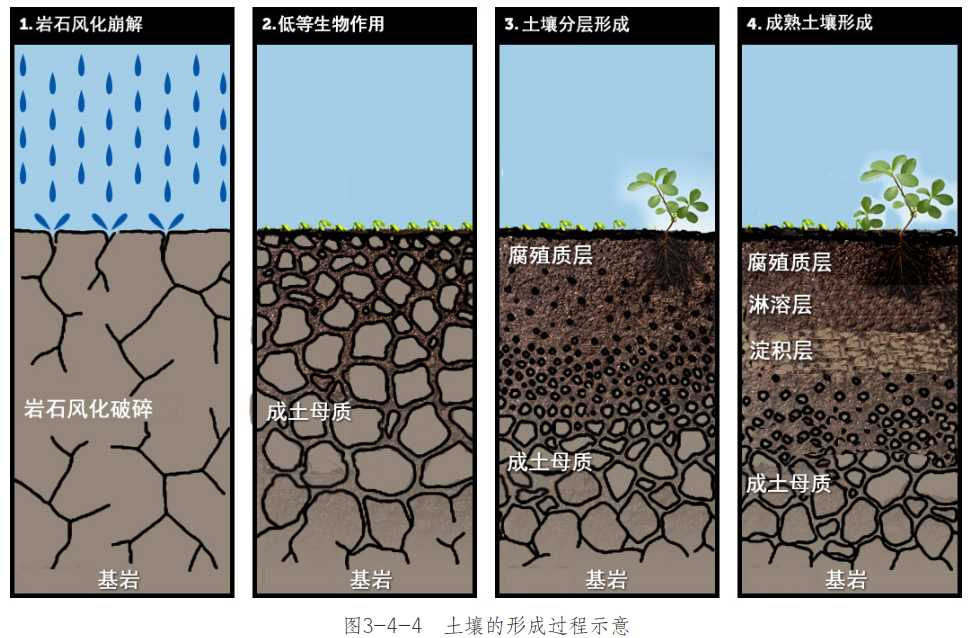 土壤的形成始于地壳表层岩石风化物,这些风化物经过极其缓慢的物理、化学和生物作用过程,慢慢发育形成土壤。