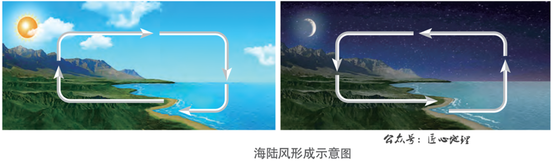 冷热地区之间空气的垂直升降运动与水平运动共同构成了热力环流。这种现象在自然界中广泛存在,如海陆风、山谷风和城市风等。海陆间热力性质差异是形成海陆风的主要原因。白天,陆地增温比海洋快,因此陆地上的气温较附近海洋高,空气受热上升;海面升温慢,海面上空的气温相对较低,空气下沉。在水平气压梯度力的作用下,上空的空气从陆地流向海洋,低空则又由海洋流向陆地,形成海风。日落后,陆地降温比海洋快,因此到了夜间,低空就出现与白天相反、由陆地吹向海洋的陆风。