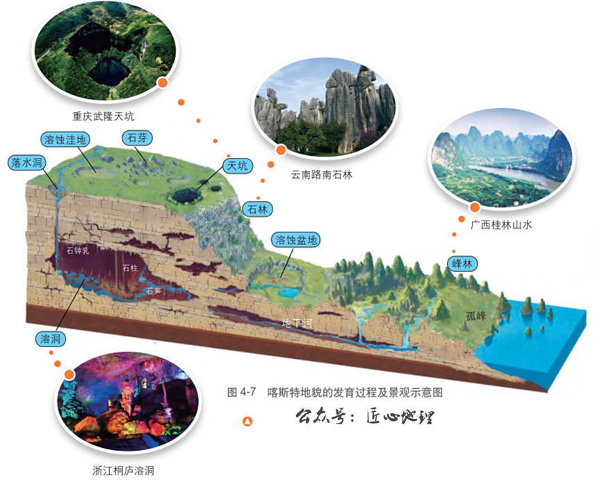 流水作用包括流水的侵蚀、搬运和堆积等方式。侵蚀指流水对河床的冲蚀及对可溶性岩石的溶蚀;搬运指流水携带泥沙和溶解质,以及推动砾石移动的过程;堆积指流水中侵蚀、搬运的物质最终沉积下来的过程。根据流水的作用方式,流水地貌主要有流水侵蚀地貌和流水堆积地貌等。