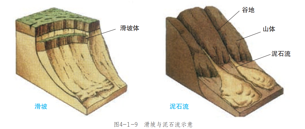 滑坡通常指斜坡上的土层或岩层,在重力作用下沿一定的软弱面整体向下滑动的现象。影响滑坡活动的因素众多,大致可以归为三个:一是不稳定的山坡形态,如较陡的坡面;二是岩土软弱面,如岩体中的裂隙和松软夹层;三是触发因素,如地下水、地表水、降水对岩土软弱面的润滑作用,以及地震、河流侵蚀、人工活动等对坡体稳定性的破坏。