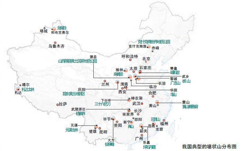 我国典型的墙状山分布图