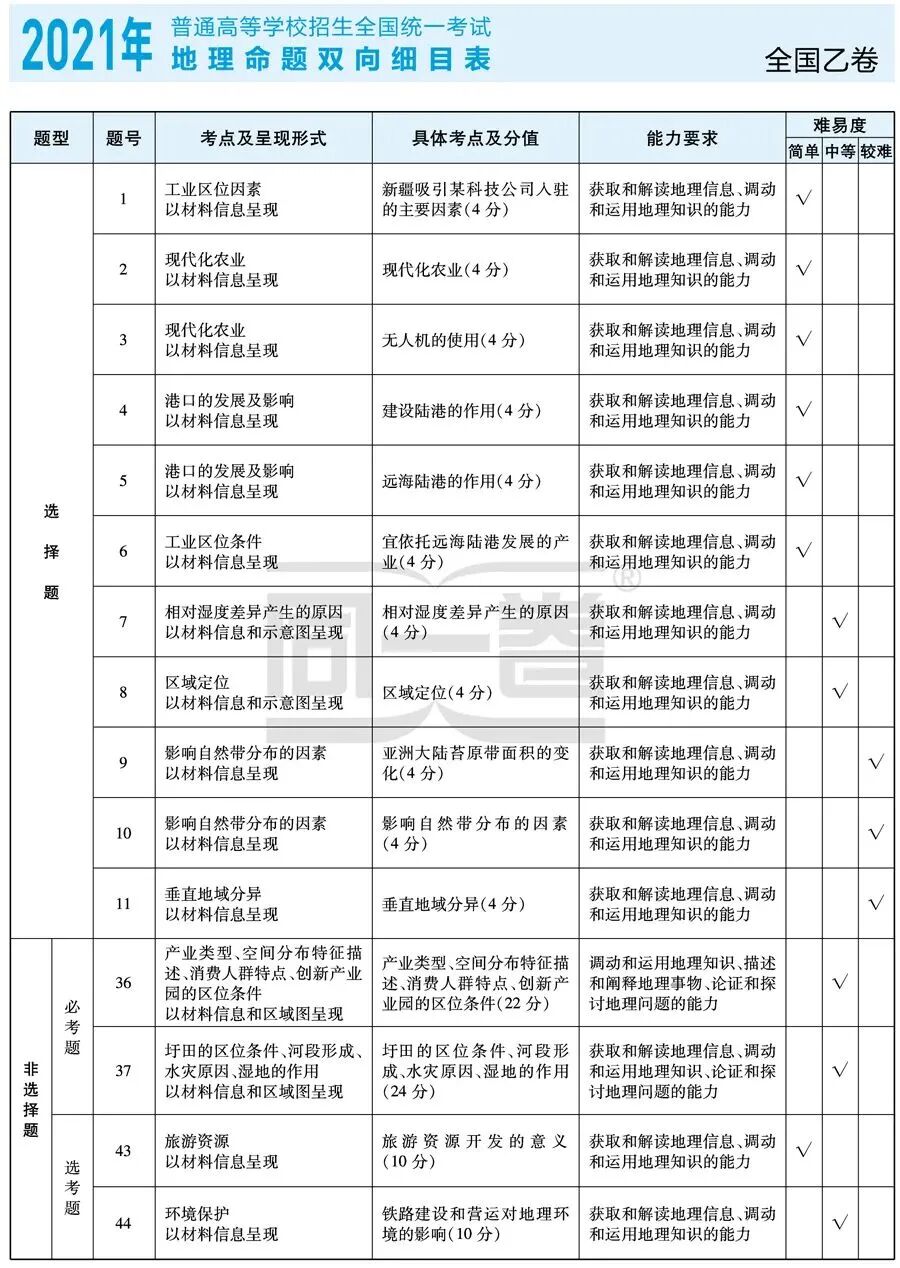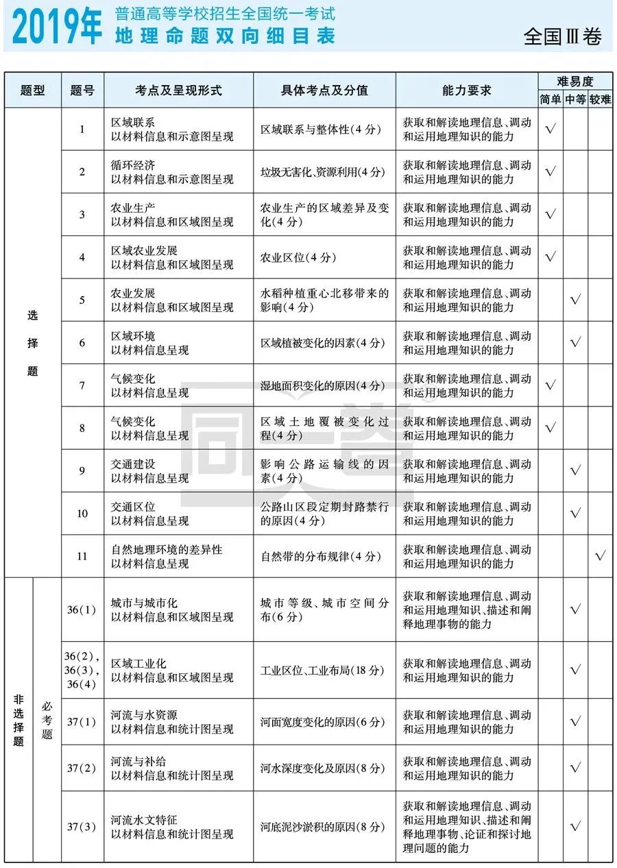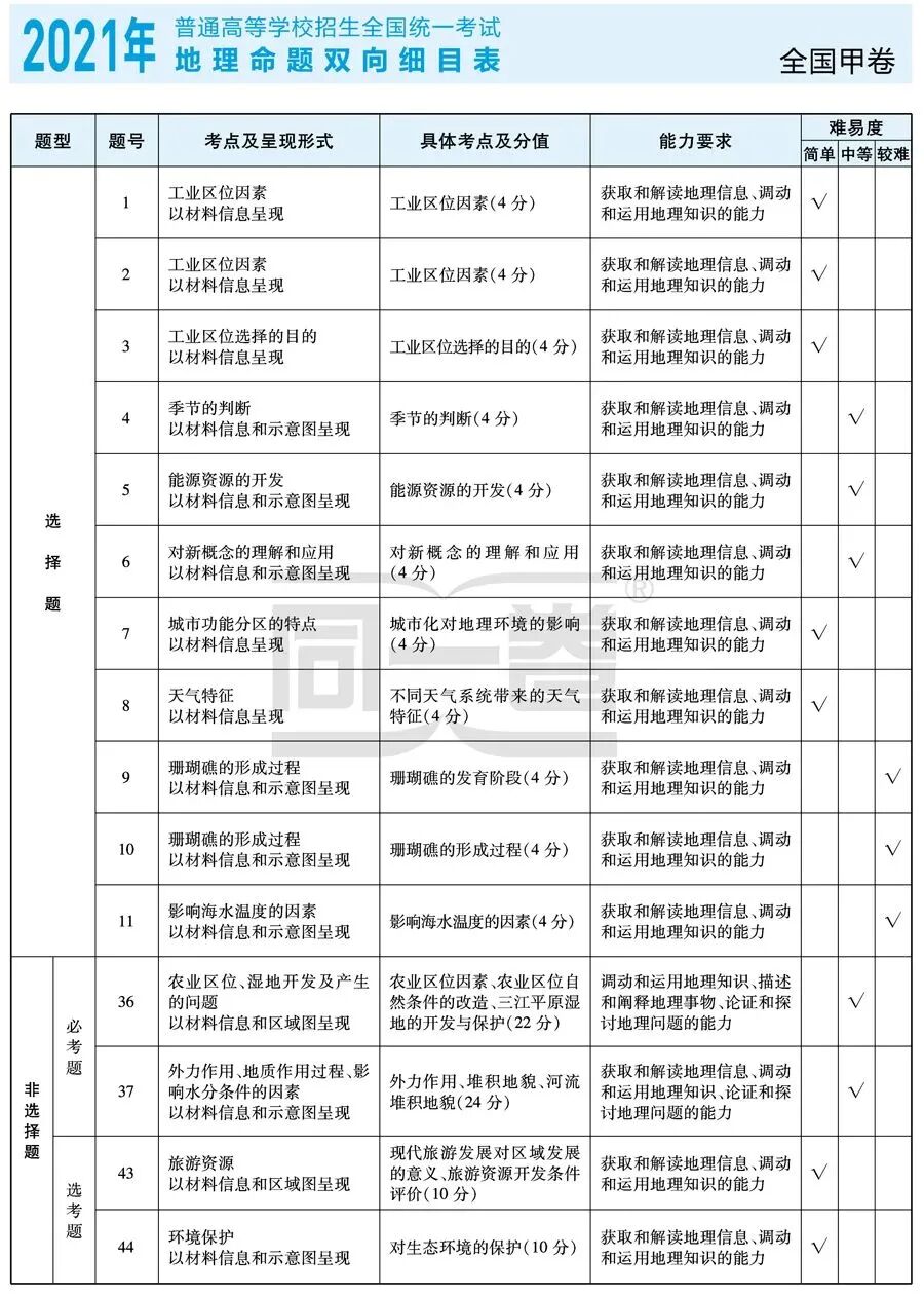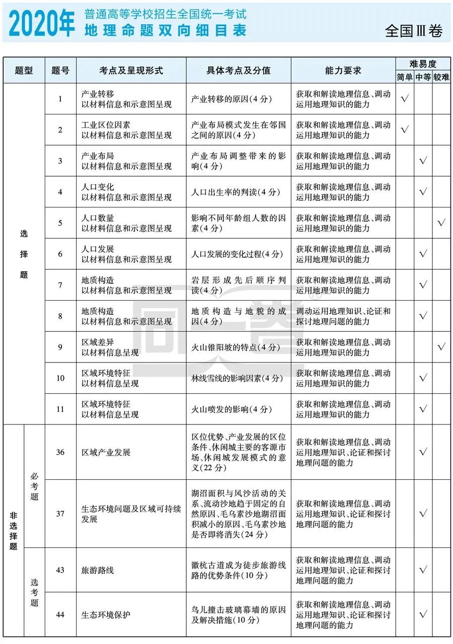 近3年高考考点一览表
