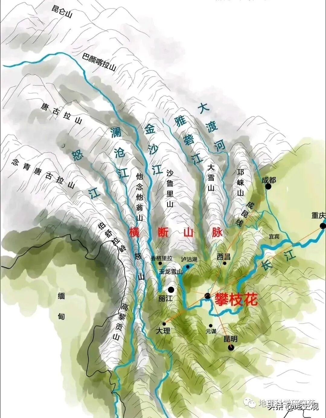 【地理图库】横断山脉:横断东西、纵贯南北、山河相间、山高谷深