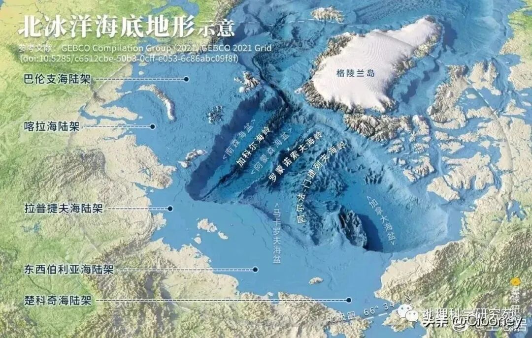 【地理图库】北冰洋海底地形示意图