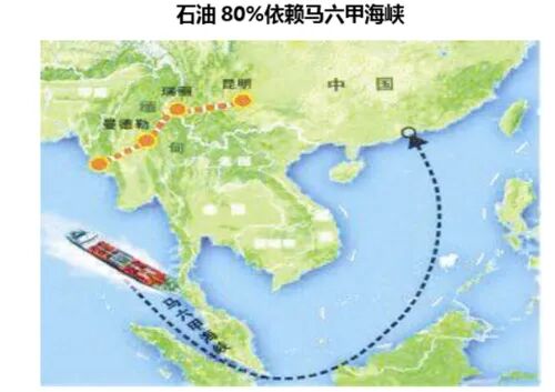 然而高达60%的海运货物需通过马六甲海峡,这使我国外贸高度依赖该海峡。一旦发生战争等突发事件,马六甲遭到封锁,我国经济立刻陷入困境。