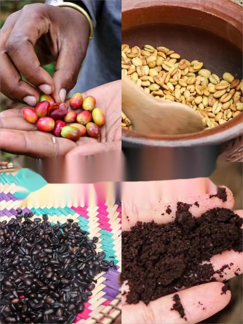 首先,店主将人工采摘的已成熟的红色咖啡豆,进行清洗-去皮-浸泡-晾晒,在时间的作用下,让咖啡豆慢慢变干,等到咖啡豆完全干透后,尽情地锤打,让它再次去皮后而露出白色的果实。